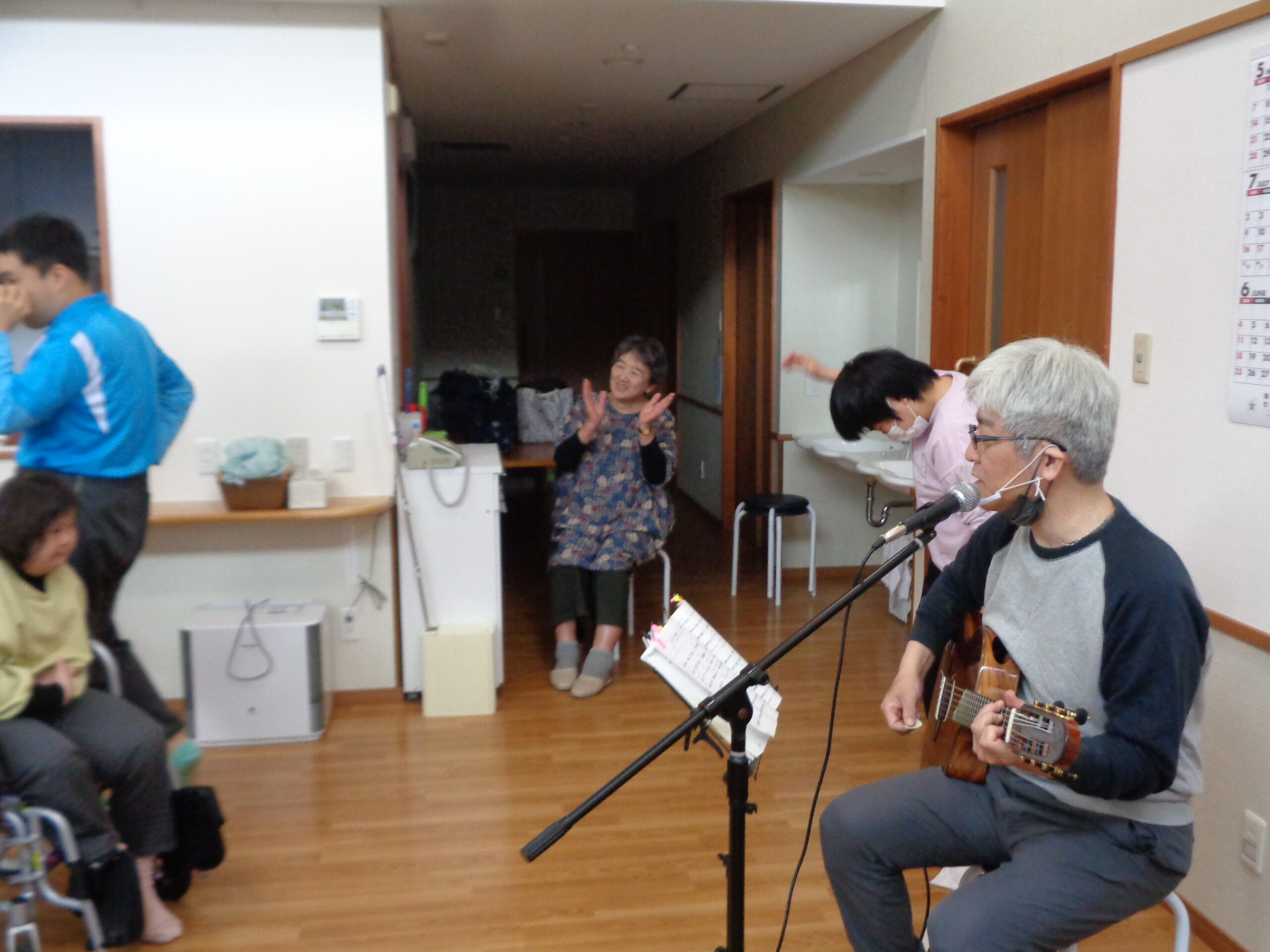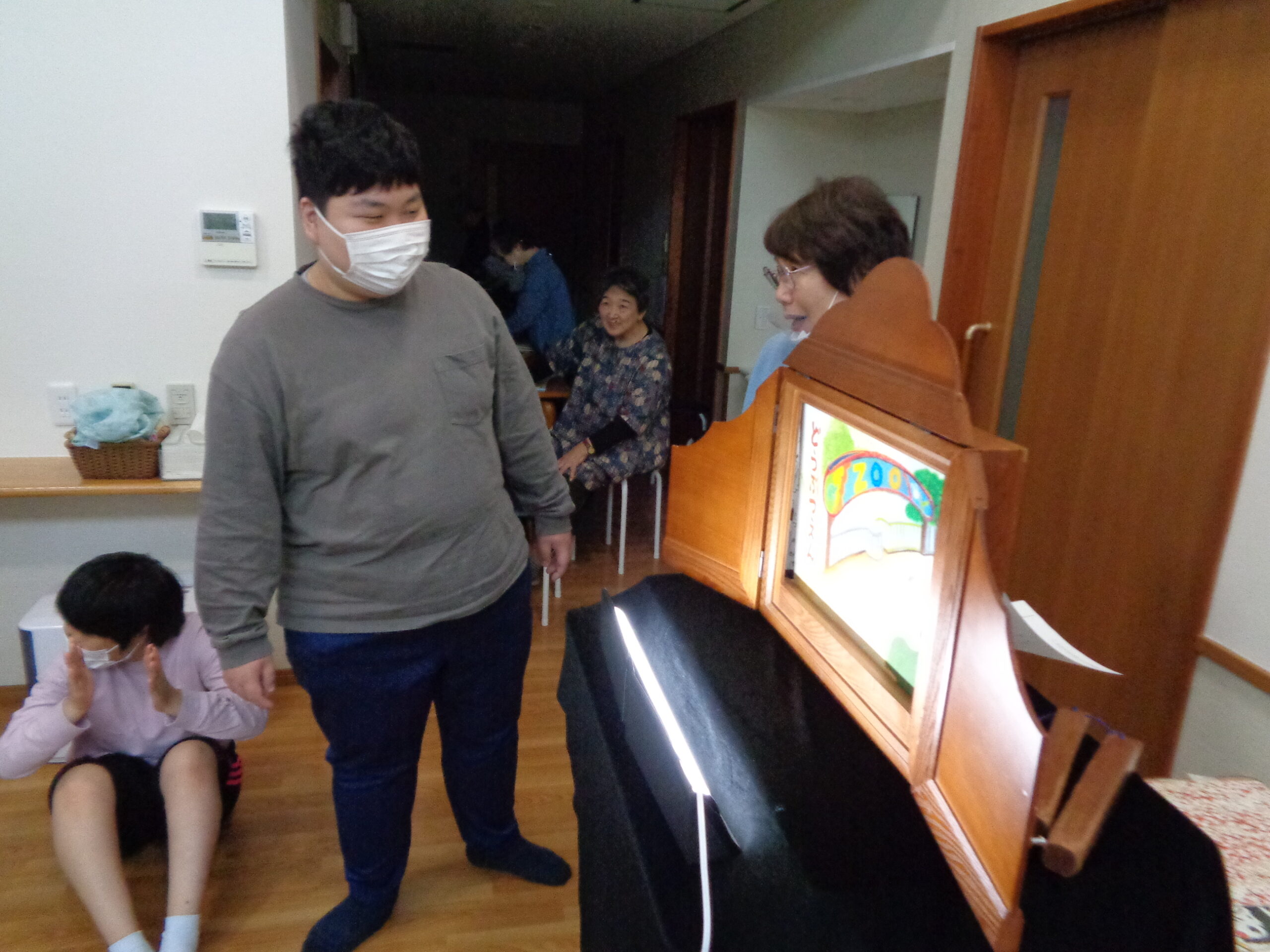 掲載した写真は「ゆうあい」のひとコマ。紙芝居塾(ながおか紙芝居ドン!パラリン様)による、音楽と紙芝居による読み聞かせボランティアです。やっぱり職員による紙芝居とは臨場感が違います!
