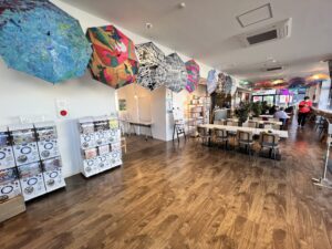 越路ていしゃば交流施設「ここらて」にて ArtBrutオリジナルデザイン傘展が 6/1~8/7 まで開催されます。 アート作品を傘に転写し花火に見立て 梅雨から花火シーズンまで楽しめるよう工夫しております。 お近くにお越しの際は、是非足をお運びください(^^)